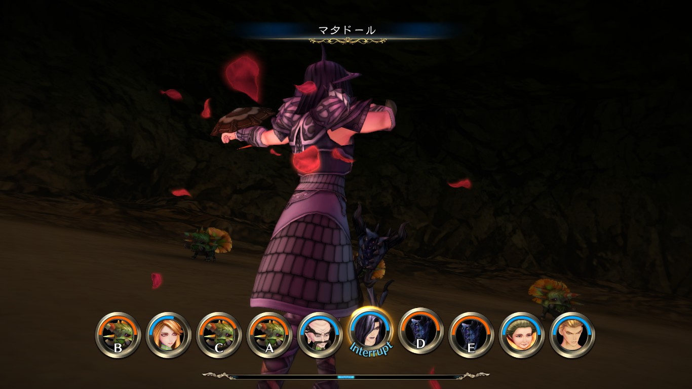 まず、例えば突属性に弱い有翼系が多ければ、小剣・槍・弓を、打属性に弱い昆虫系が多ければ棍棒・体術を扱うユニットを中心に、バトルメンバーを選んで下さい。また序盤のうちは、ゴブリンや昆虫系の敵が多い場合、インタラプト技「マタドール」や「大震撃」が有用です。