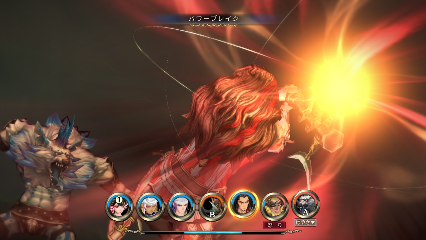 敵全体に基本技より少し大きい程度のガード不能なダメージを与えます。効果の割に消費BPが高めな印象が否めませんが、打属性に弱い敵や、ガード率の高い敵が多い場面で役に立ちます。