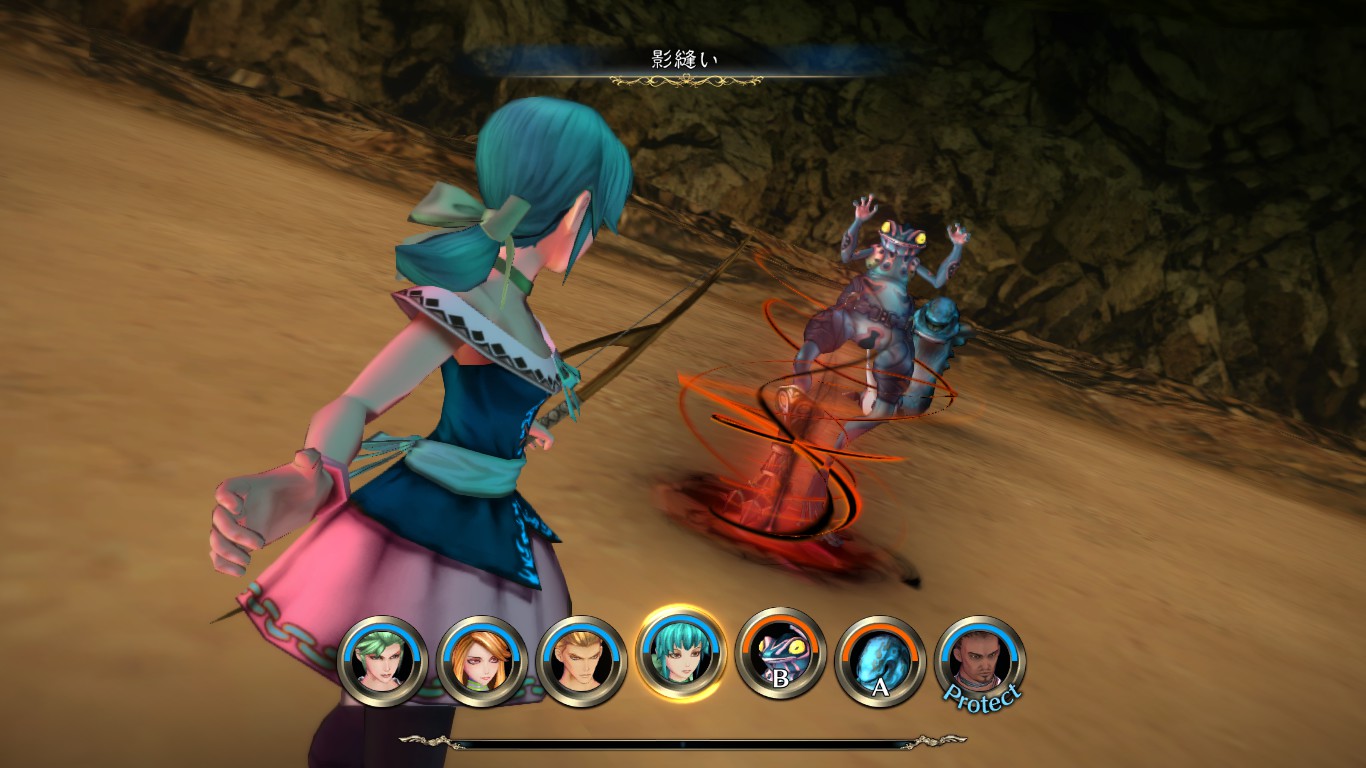 実は間接攻撃技のほとんどは突属性なのですが、この技は唯一の斬属性です。つまり敵の突属性に反応するインタラプト技を解除するには、この技を使うしかありません。しかし、行動順の補正がマイナスされ、浮遊している敵に効果が無いため、使い勝手は良くありません。