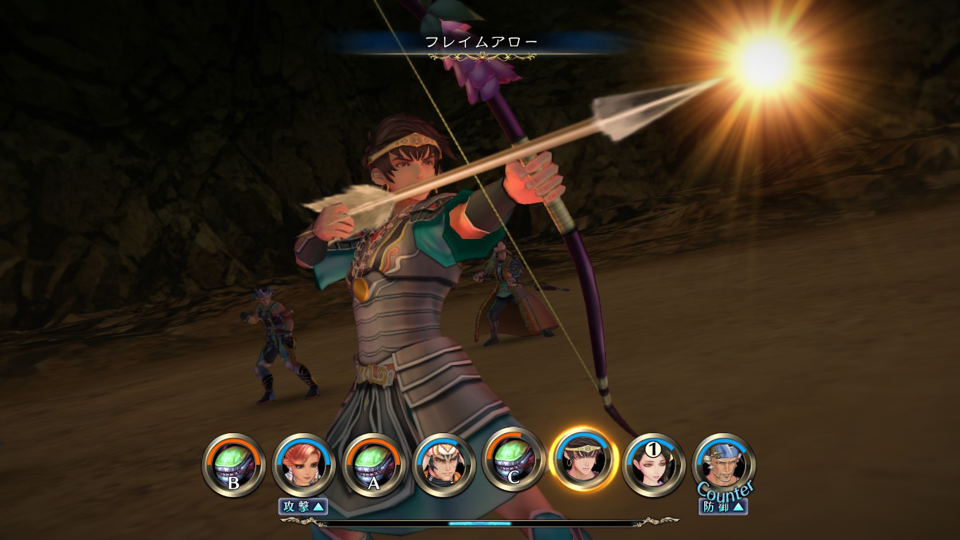 弓の基本技ですが、ランク0のとき消費BPが2なので、バトルメンバー編成時に気をつけて下さい。陣形「ハンターシフト」なら、弓の消費BPを抑えることができます。